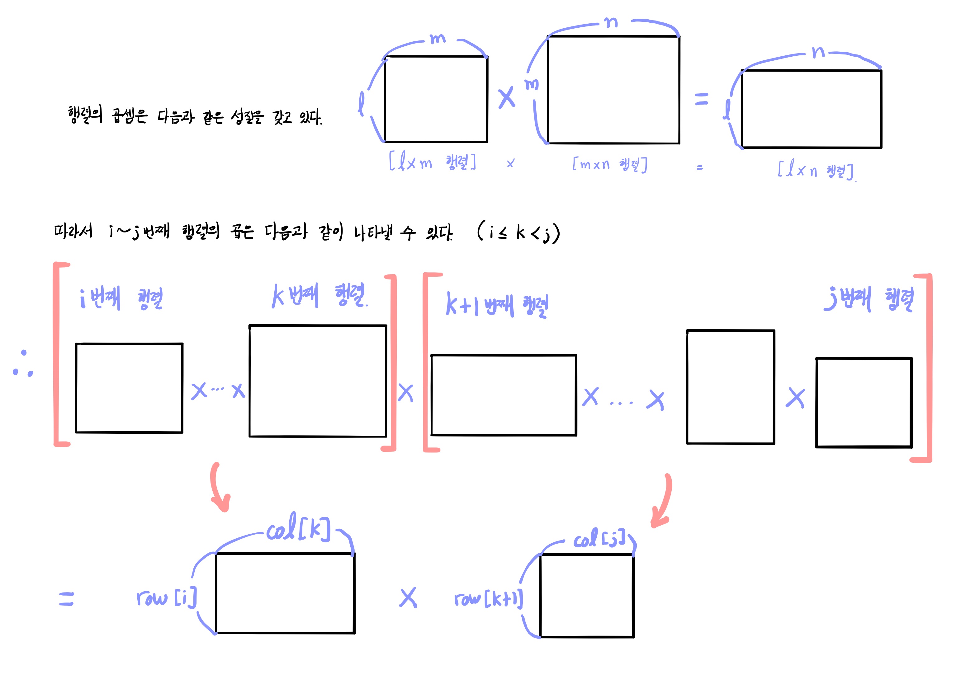 DP[i][j] = k가 i부터 j까지 이동할 때 (DP[i][k] + DP[k+1][j] + row[i]*col[k]*col[j])의 최솟값이라 나타낼 수 있다.