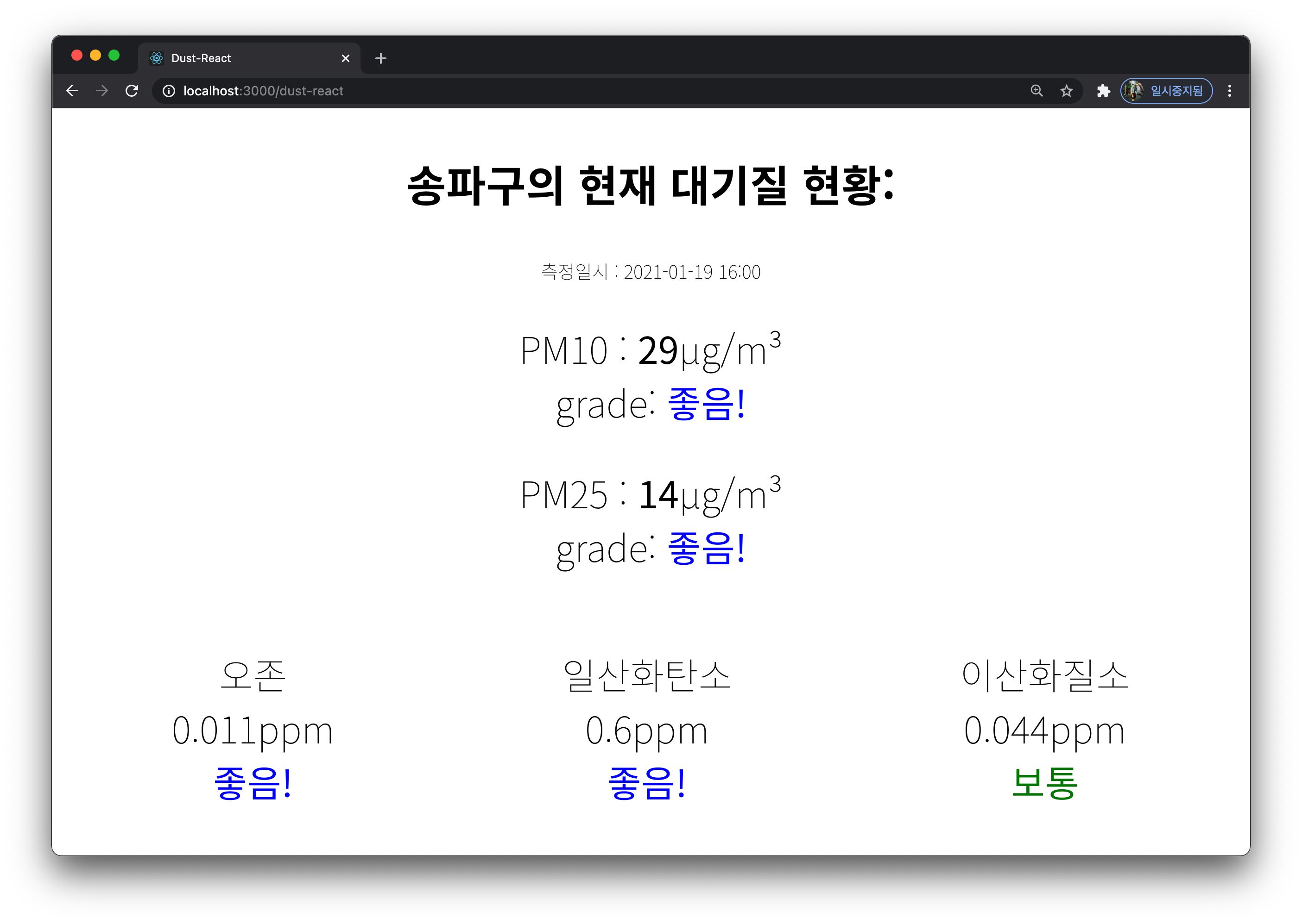 앞선 포스트에서 create-react-app으로 미세먼지 정보 OpenAPI를 받아오는 React Application을 제작하는 과정을 소개했었다. 이러한 API에서 데이터를 받아오는 기능을 구현하는 React Application을 제작할 때