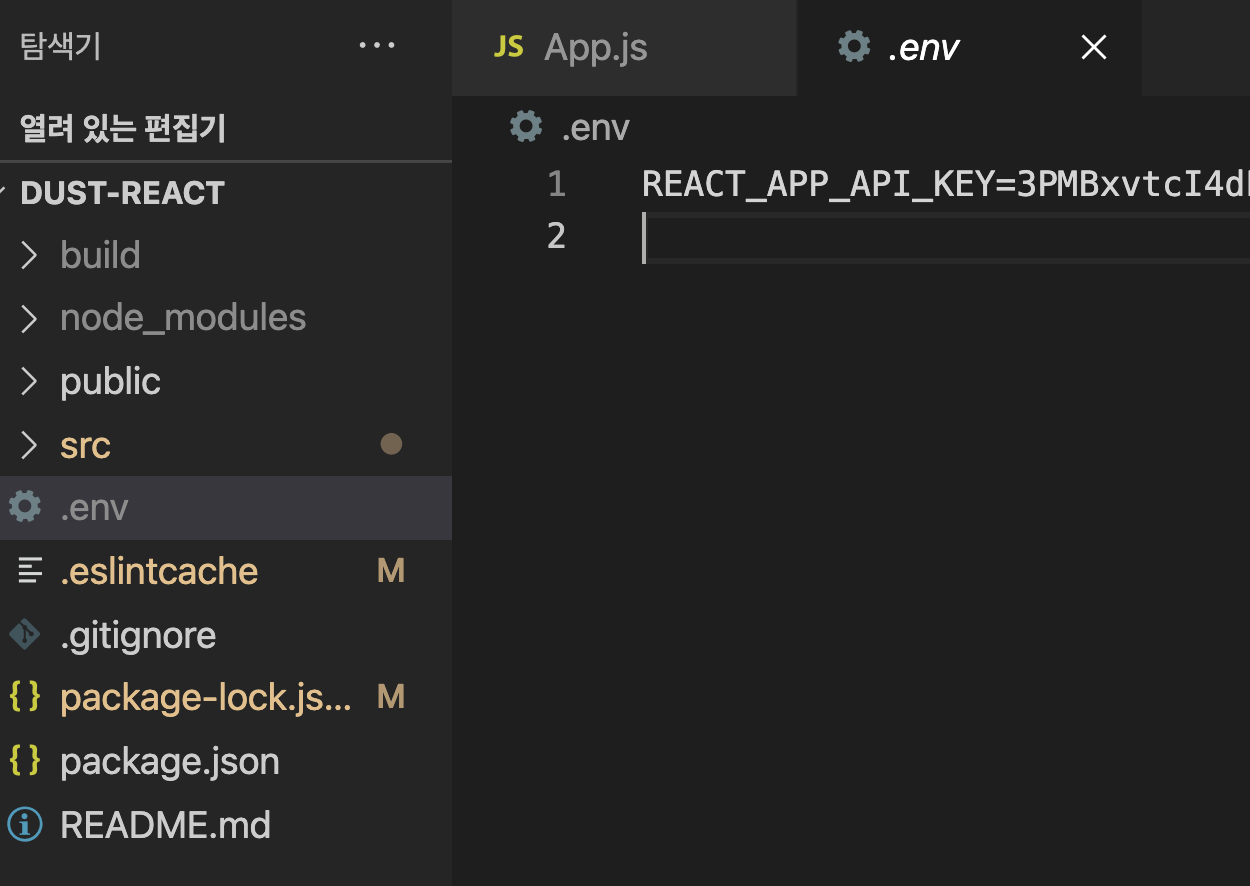 이러한 API에서 데이터를 받아오는 기능을 구현하는 React Application을 제작할 때는 API Key가 노출되지 않도록 하는 것이 중요하다. GitHub public repository에 올리거나 배포할 경우 API Key가 다른 사용자에 의해 악용될 우려가 있기 때문이다.