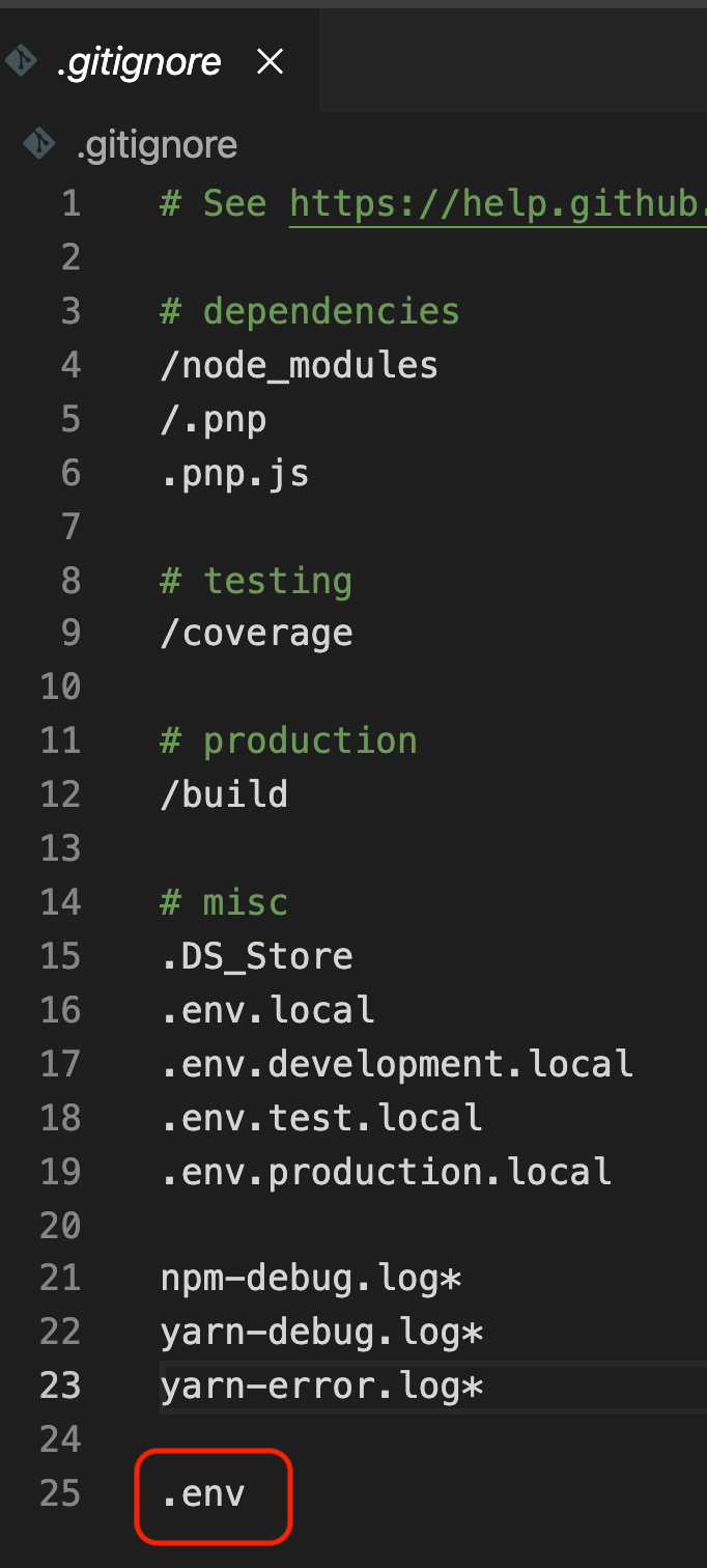 이후 .gitignore 파일에 .env 파일을 추가한다.